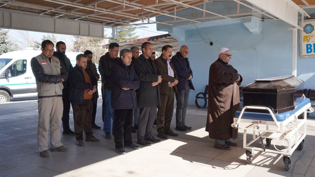 Salat jenazah WNI yang menjadi korban gempa Turki. (Foto: Courtesy/KBRI Ankara)