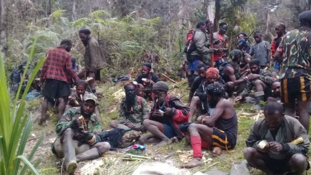 Tentara Pembebasan Nasional Papua Barat-Organisasi Papua Merdeka (TPNPB-OPM) saat berada di salah satu kawasan pegunungan Papua.