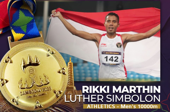 Popers dari kabar SEA Games 2023 di Kamboja, scbang olahraga (cabor) atletik kembali mempersembahkan medali emas untuk Indonesia. Kali ini, Rikki Marthin Luther Simbolon yang berhasil meraih juara atletik nomor Men’s 10.000m SEA Games Kamboja 2023 di Morodok Techo National Stadium pada sore hari tanggal 11 Mei 2023.