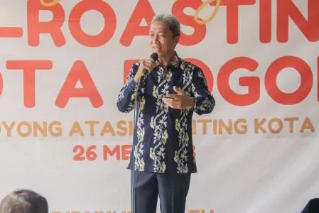 Wakil Wali Kota Bogor, Jawa Barat, Dedie Abdul Rachim saat sambutan pembukaan kegiatan pertama Go-Roasting, di Aula Masjid Al-Iman, Kelurahan Sindangbarang, Kecamatan Bogor Barat, Kota Bogor, Jawa Barat, Jumat (26/5/2023). ANTARA/HO-Pemkot Bogor