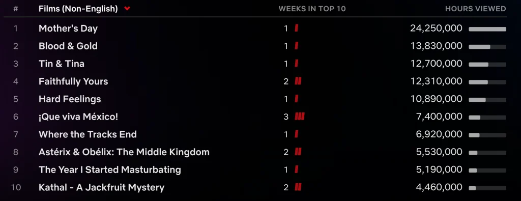 Lihat daftar Top 10 Netflix untuk minggu 22-28 Mei di bawah ini, dimulai dengan serial berbahasa Inggris dan diikuti oleh acara TV non-bahasa Inggris, film berbahasa Inggris, dan kemudian film non-bahasa Inggris.