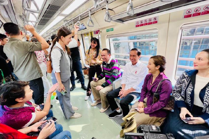 Tidak hanya bersama para menteri dan pejabat pemerintah daerah, Jokowi pada Kamis ini menjajal LRT bersama para pemengaruh (influencer) dan pegiat seni.
