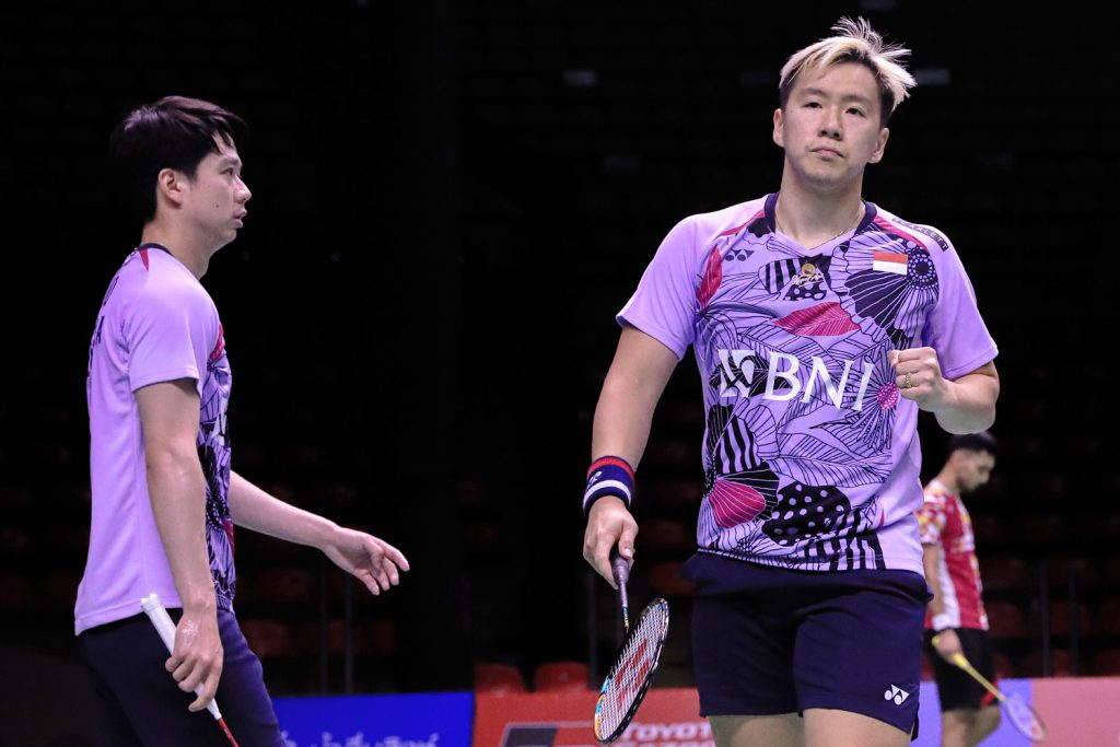 Kevin Sanjaya Sukamuljo & Marcus Fernaldi Gideon pada Thailand Open 2023 (Humas & Media PP PBSI)
