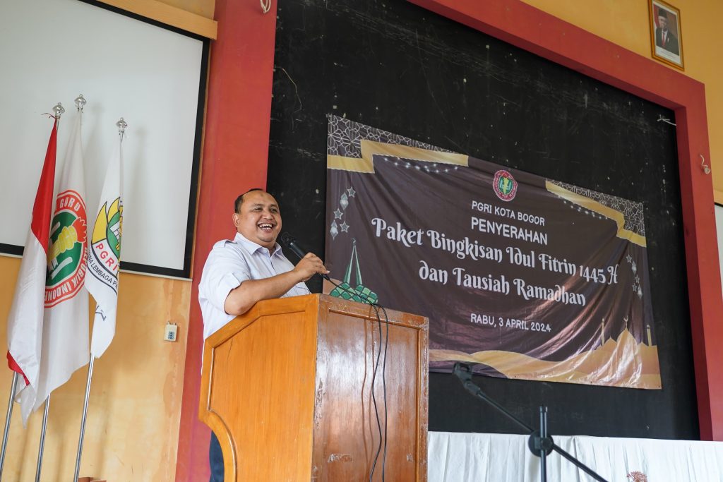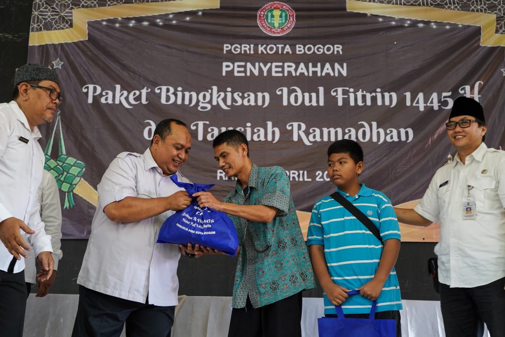 Kota Bogor | Persatuan Guru Republik Indonesia (PGRI) pengurus Kota Bogor bersama Ketua DPRD Kota Bogor, Atang Trisnanto dan stakeholder dunia pendidikan di Kota Bogor, membagikan bingkisan Idul Fitri untuk anak yatim dan kaum dhuafa, Rabu (3/4/2024).
