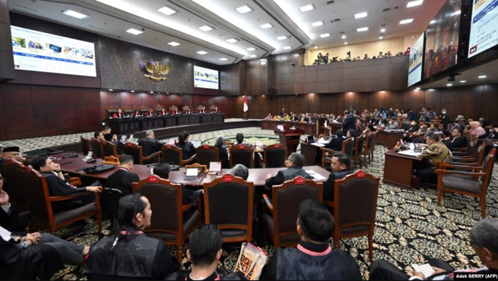 Sidang sengketa hasil pemilu di Mahkamah Konstitusi Jakarta, 5 April 2024. (Foto: Adek BERRY/AFP)