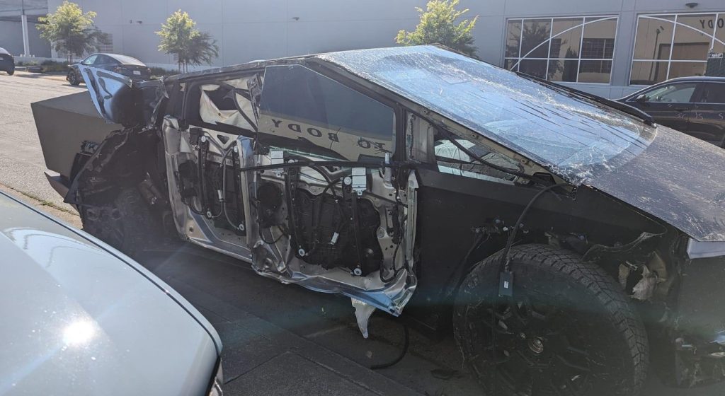 Foto-foto Cybertruck yang rusak dengan panel pintu sisi penumpang yang robek telah muncul secara online di forum klub Cybertruckowners. Keadaan yang menyebabkan kecelakaan itu belum diketahui.