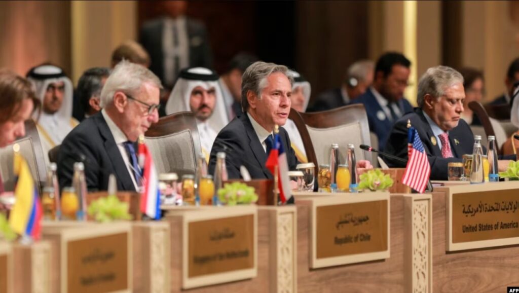 Di konferensi itu, Blinken juga mendesak para pemimpin yang hadir untuk menekan Hamas agar menerima kesepakatan gencatan senjata dengan Israel.
