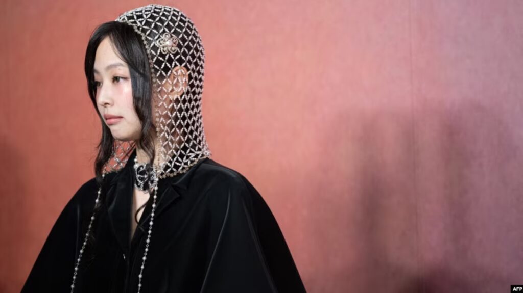 Anggota grup K-pop Korea Selatan BLACKPINK Jennie berpose untuk foto sebelum menghadiri Pertunjukan Métiers d’art Chanel Dakar 2022/23 di Tokyo pada 1 Juni 2023. (Foto: AFP)