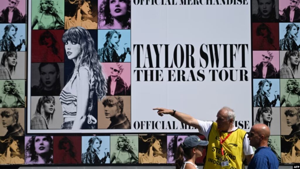 Poster konser Taylor Swift di Warsawa, Polandia 31 Juli 2024 (foto: dok). Tiga rencana konser di Wina oleh megabintang Amerika itu dibatalkan setelah Austria menangkap seorang pria terkait dengan rencana serangan teror terhadap acara konser itu.