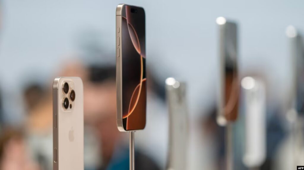 Rangkaian iPhone 16 ditampilkan dalam acara peluncurannya di Cupertino, California, pada 9 September 2024. (Foto: AFP/Nic Coury)