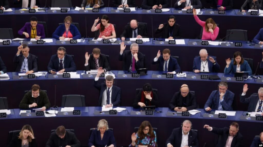 Para anggota parlemen Uni Eropa memberikan suara pada Undang-Undang soal Kecerdasan Buatan atau AI di Parlemen Eropa di Strasbourg, Prancis timur (foto: dok).