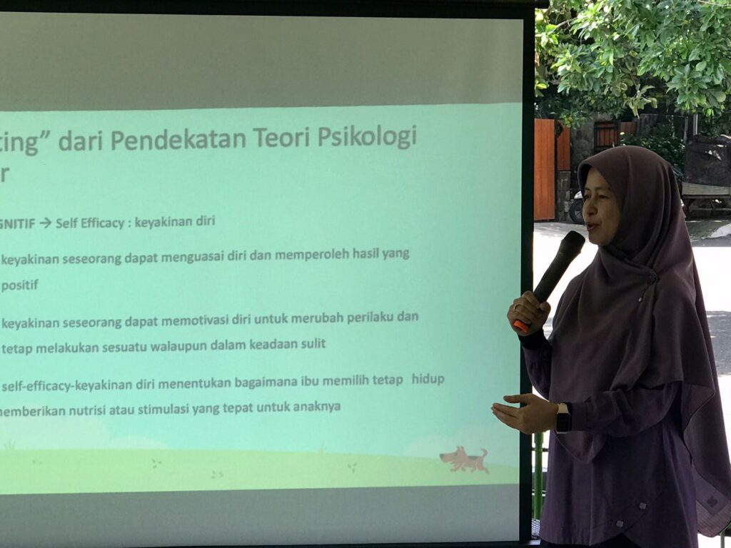 Ika Mustika, konselor keluarga sedang memberikan paparan tentang parenting untuk ibu-ibu yang hadir (foto pomo)