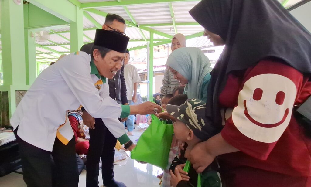 Wakil Ketua BAZNAS Kota Bogor, Subhan Murtadla saat memberikan bantuan kepada masyarakat (saldy ns/popers.id)