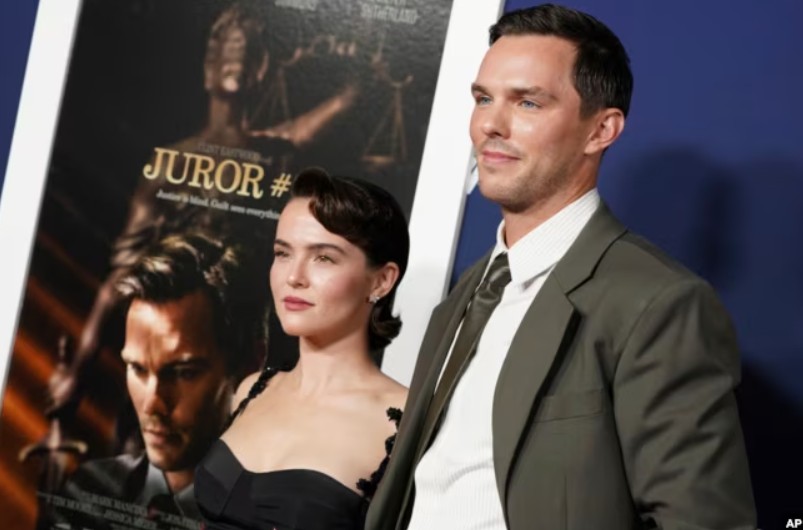 Zoey Deutch dan Nicholas Hoult di pemutaran perdana AFI Fest “Juror #2” di TCL Chinese Theatre di Los Angeles. (Jordan Strauss/Invision/AP)