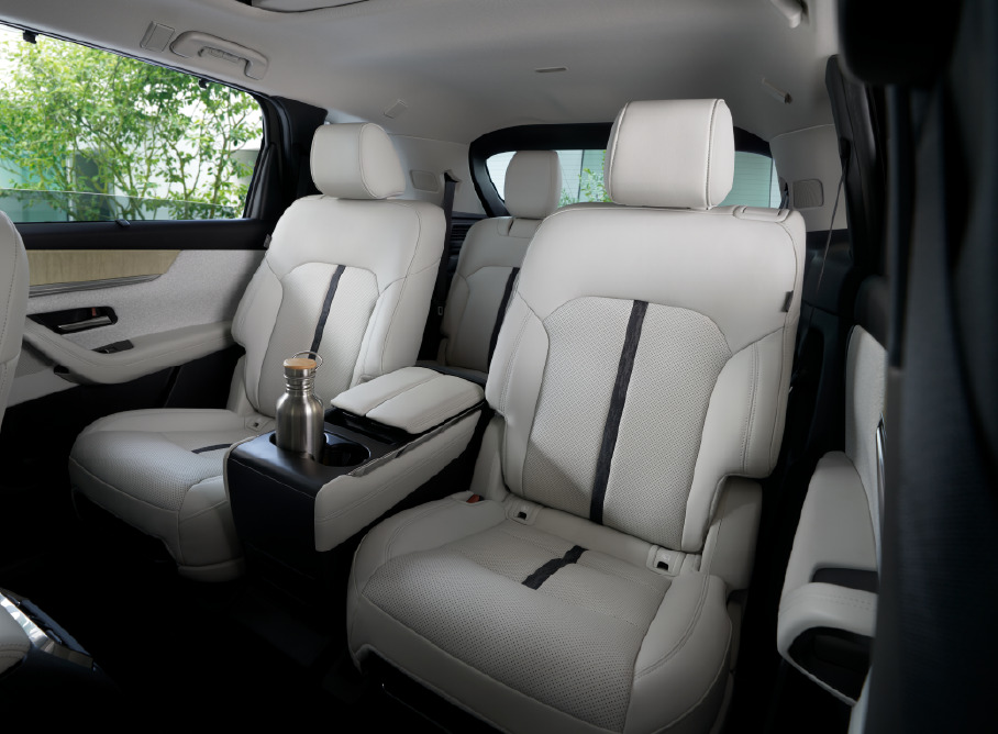 Mazda CX-80 punya 3 baris kursi yang nyaman dan fleksibel. Ada captain seat di baris kedua, jok yang bisa dilipat buat muat barang lebih banyak, dan teknologi pengurang kebisingan. Fitur keamanannya lengkap banget, kayak: