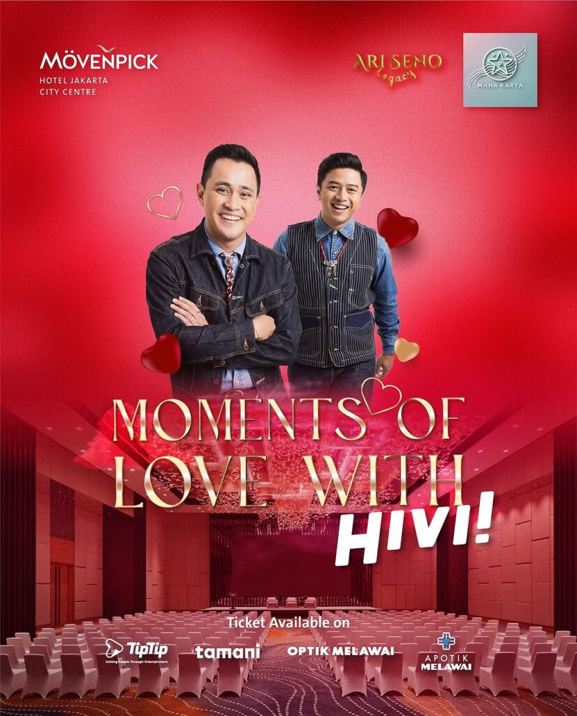 Selain menikmati musik asyik dari HIVI!, kamu juga bisa nikmatin makan malam romantis di beberapa restoran top milik Mövenpick, seperti Wilde Cut Steakhouse, La Floriane, atau Song Xiang Lou. Paket makan malam plus tiket konser dibanderol Rp1.800.000 per orang. Kalau cuma mau nonton konsernya aja, tiketnya seharga Rp1.300.000 per orang. Ada penawaran spesial juga nih buat yang beli sebelum 30 Januari 2025.