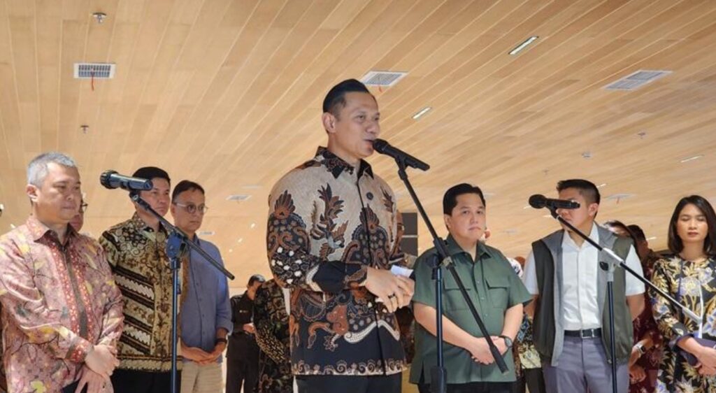 Menko IPK Agus Harimurti Yudhoyono mengumumkan pemberian diskon tiket pesawat Lebaran 2025. (Foto: Iqbal Dwi Purnama)