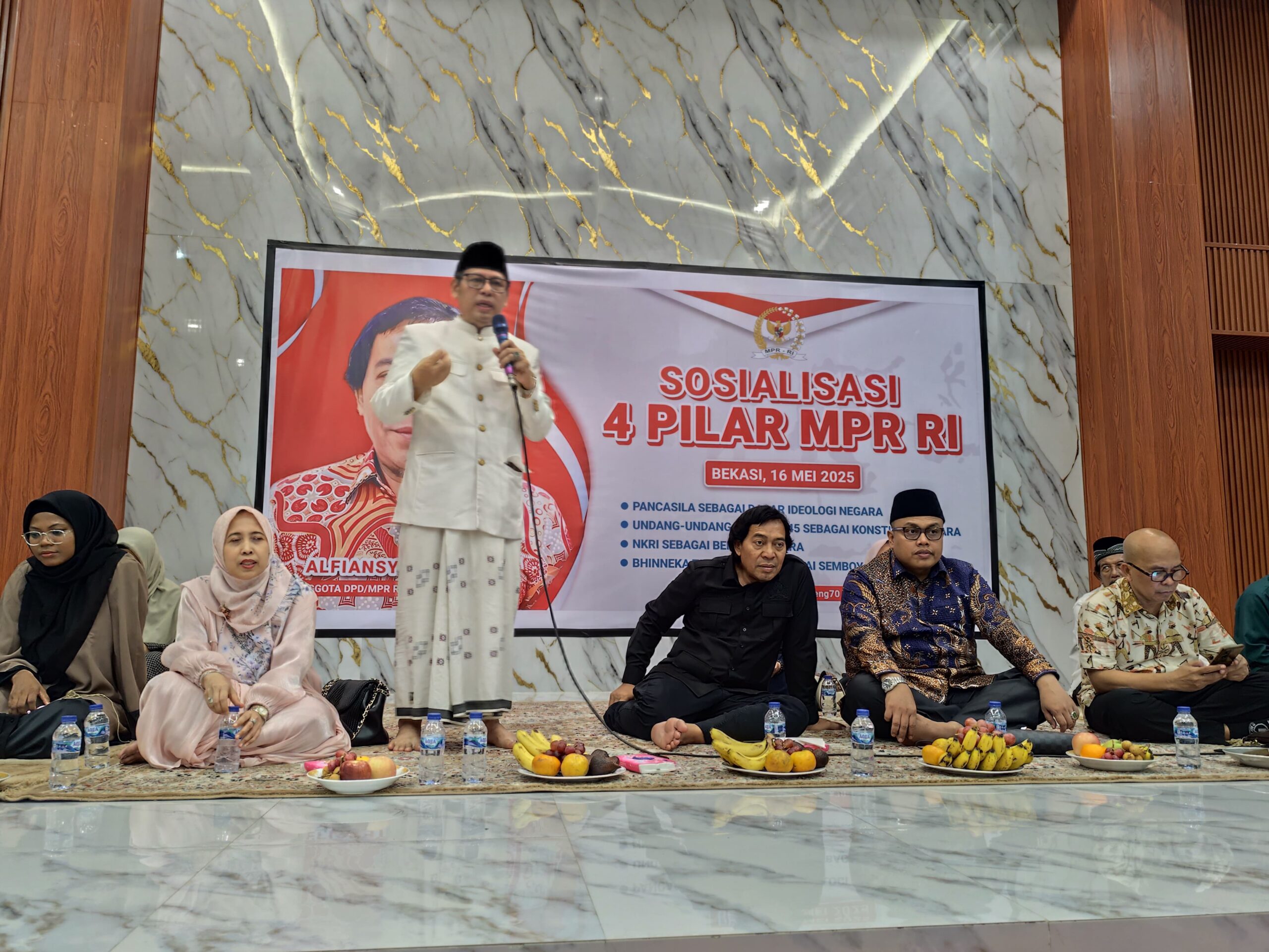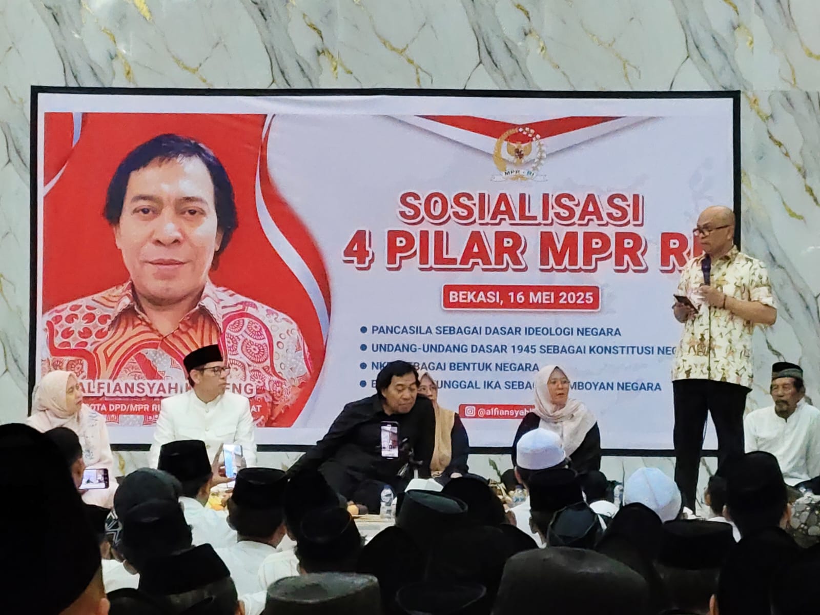 BEKASI | Suasana Pondok Pesantren Mahasina Darul Quran wal Hadist, Bekasi, Sabtu (18/5), berubah jadi panggung dialog kebangsaan yang hangat dan penuh semangat. Acara Sosialisasi 4 Pilar MPR RI hadir dengan balutan gaya santai, tapi tetap sarat makna. Para tokoh nasional hadir untuk mengajak para santri memahami dan menghidupi nilai-nilai dasar bangsa Indonesia.