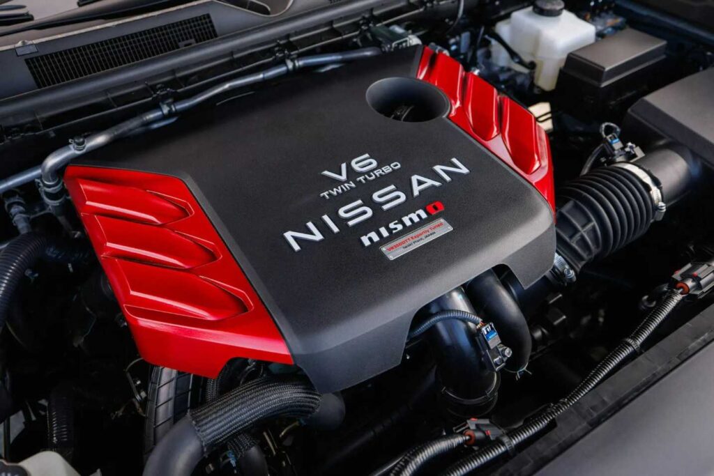 Di balik kap mesinnya, Armada NISMO dibekali mesin V6 twin-turbo 3.5 liter yang udah di-tuning ulang. Hasilnya? Tenaga naik jadi 460 hp dan torsi 699 Nm, asal pakai bensin premium, ya. Itu lebih tinggi 35 hp dari versi standarnya. Nissan bilang tenaga ekstra ini datang dari ubahan di engine tuning dan valve clearance-nya.