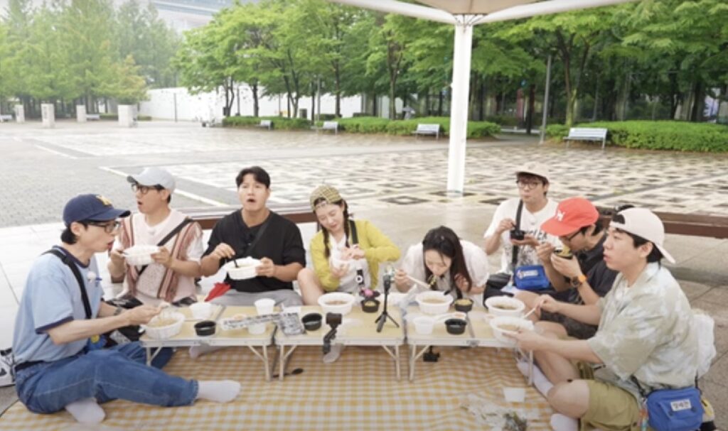 Kim Jong Kook juga ngocol: “Ji Hyo sekarang kayak food thief! Ye Eun makin kecil, dia makin gede.”