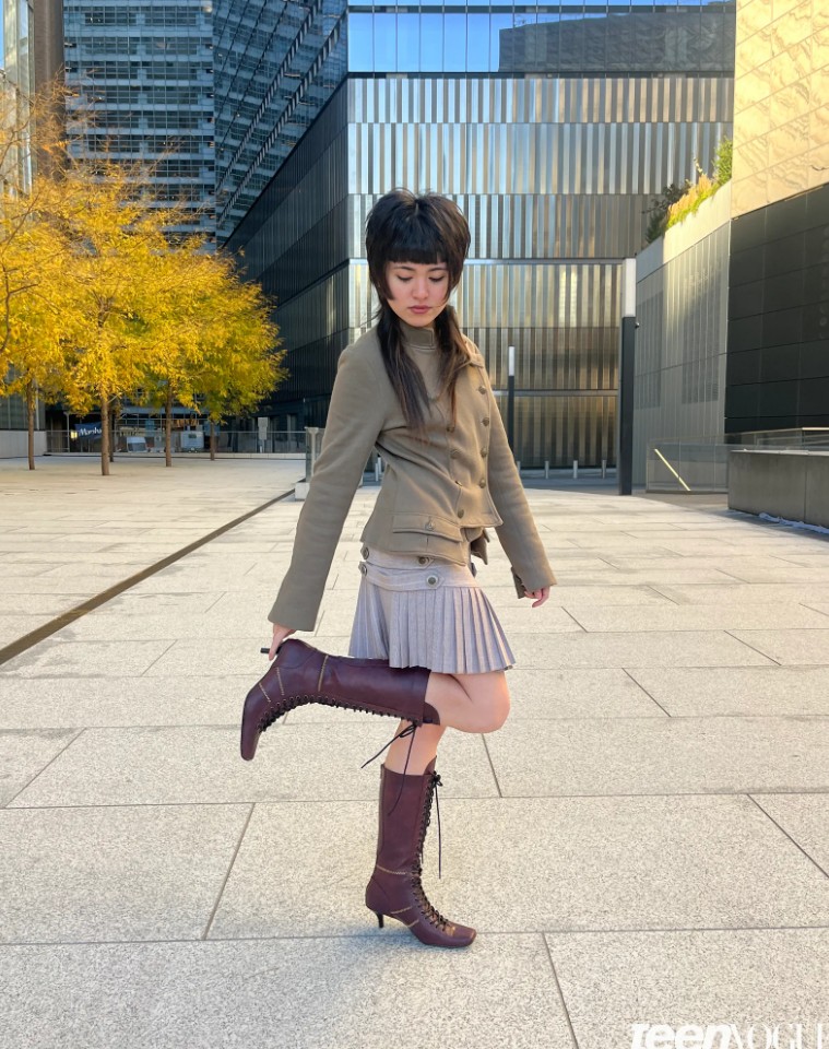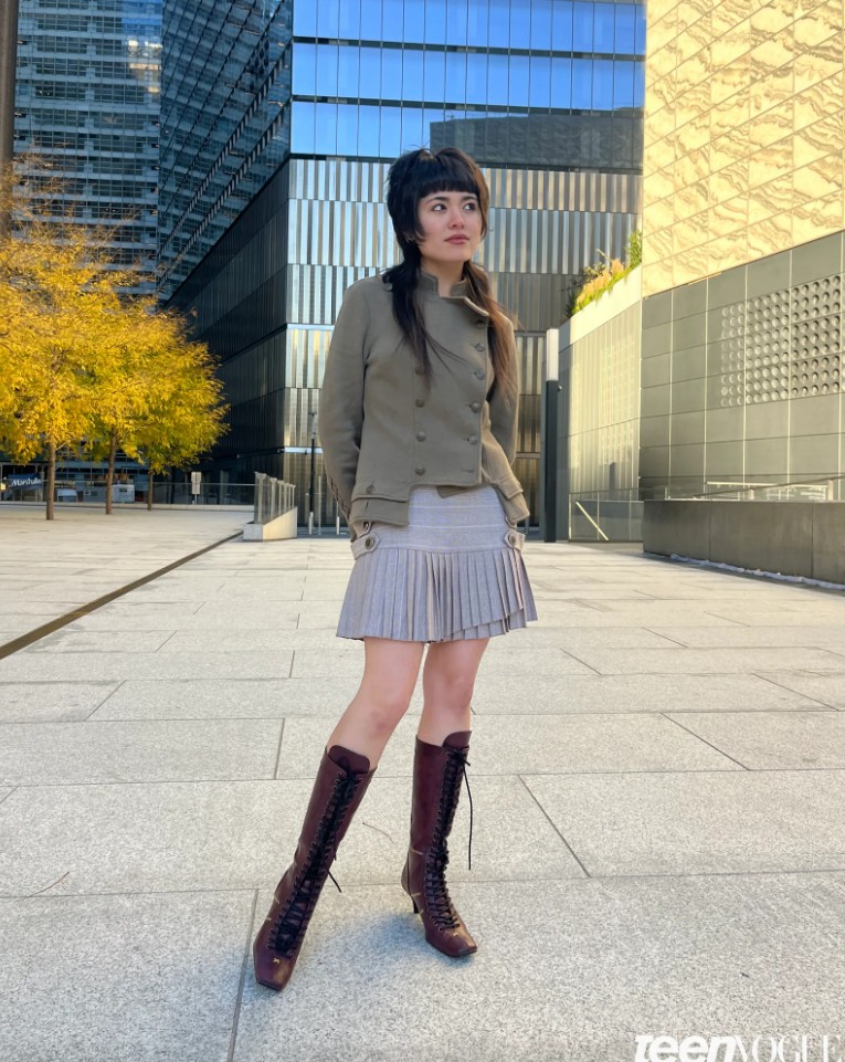 Gue padukan sama jaket militer double-breasted nemu di stoop sale dan rok pleats asimetris dari lemari adik gue. Tukeran baju tuh life hack paling murah buat cari inspirasi style baru.