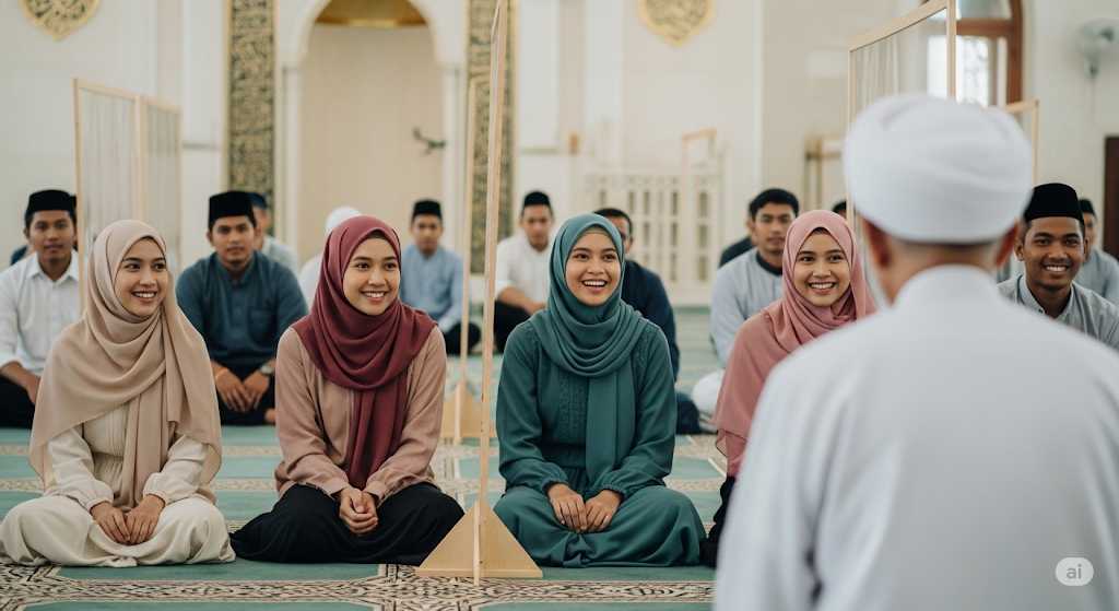 datang bareng teman-teman lo ke kajian ilmu supaya saling mengingatkan dunia dan akhirat (ilustrasi: AI)