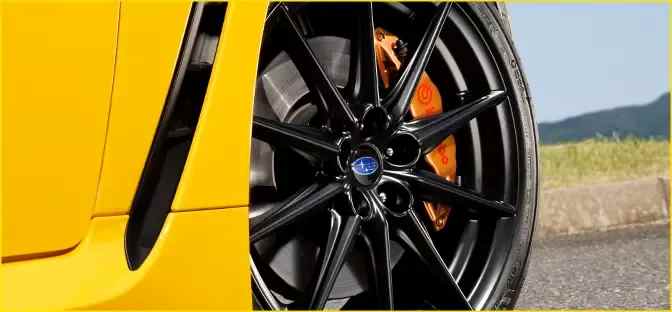 Sementara itu, Subaru nggak mau kalah. Mereka ngerilis BRZ STI Sport Yellow Edition dengan warna Sunrise Yellow yang sama. Velgnya beda dikit, 18 inci juga tapi dilabur hitam dengan kaliper emas plus emblem Subaru yang di-blackout.