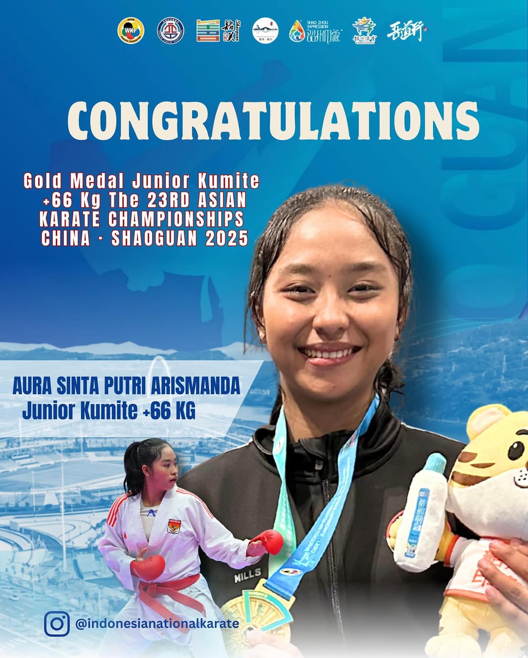 “Ini bukti nyata semangat juang dan dedikasi Aura untuk mengharumkan nama Indonesia di level Asia,” tulis akun resmi Instagram @indonesianationalkarate.