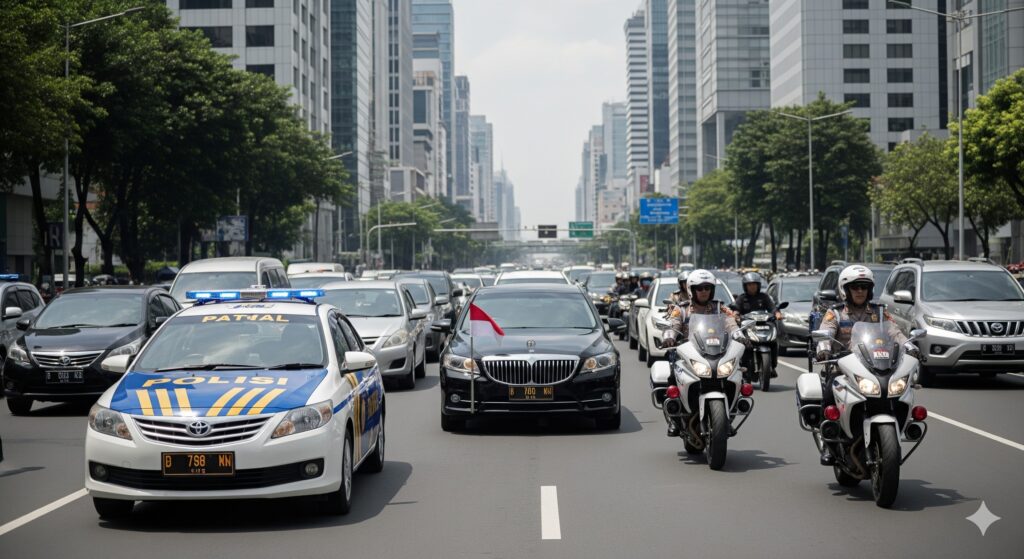 Ilustrasi iring-iringan patwal di jalan [foto ilustrasi: AI]