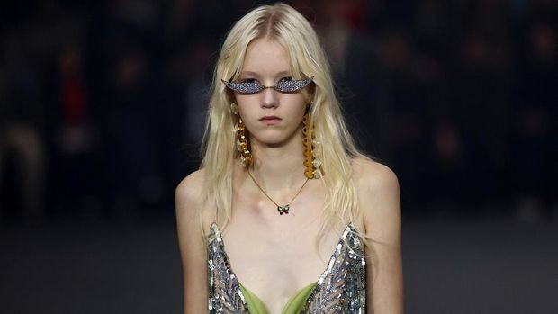 Lewat koleksi ‘Fireflies’, Alessandro Michele menolak anggapan Pasolini bahwa kunang-kunang sudah mati. Kunang-kunang buatnya belum mati tetapi menunggu untuk dilihat kembali. [REUTERS/Stephane Mahe]