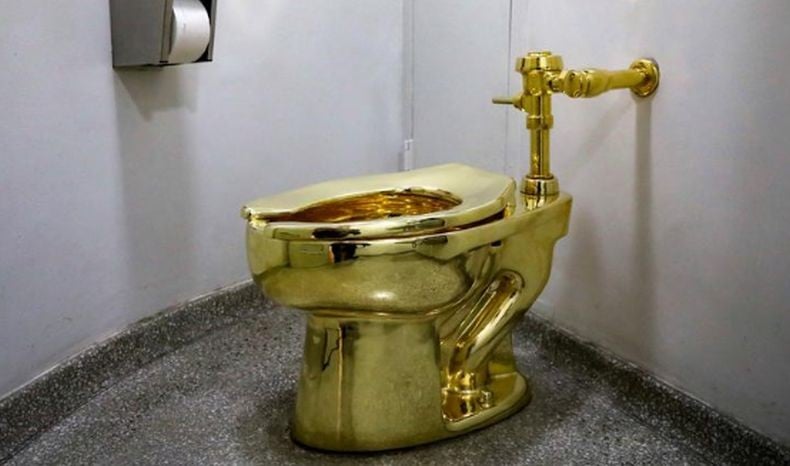 Jangan kira ini cuma pajangan doang. Karya dari seniman konseptual Italia, Maurizio Cattelan, ini dibuat tahun 2016 dan fully functional. Jadi, iya, lu beneran bisa “ngerjain tugas” di atas karya seni bernilai ratusan miliar. Bisa dibilang, ini pengalaman berak yang paling mahal sepanjang sejarah, kali, ya?