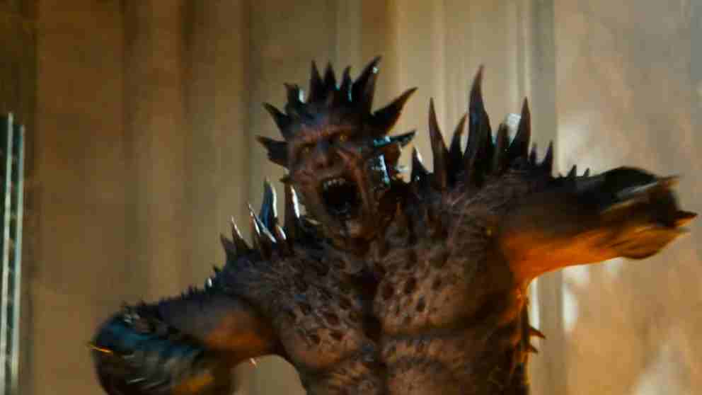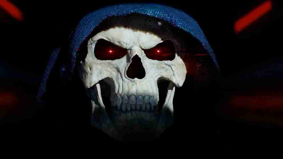 Ini dia sang Lord of Destruction! Penampakan pertama Skeletor (Jared Leto) bener-bajan nggak ngecewain: mukanya tengkorak tulen (CGI tentunya), badan berotot biru, dan tongkat dengan hiasan tengkorak domba. Pertanyaannya, suara cemprengnya dari kartun bakal dipertahin nggak, ya?
