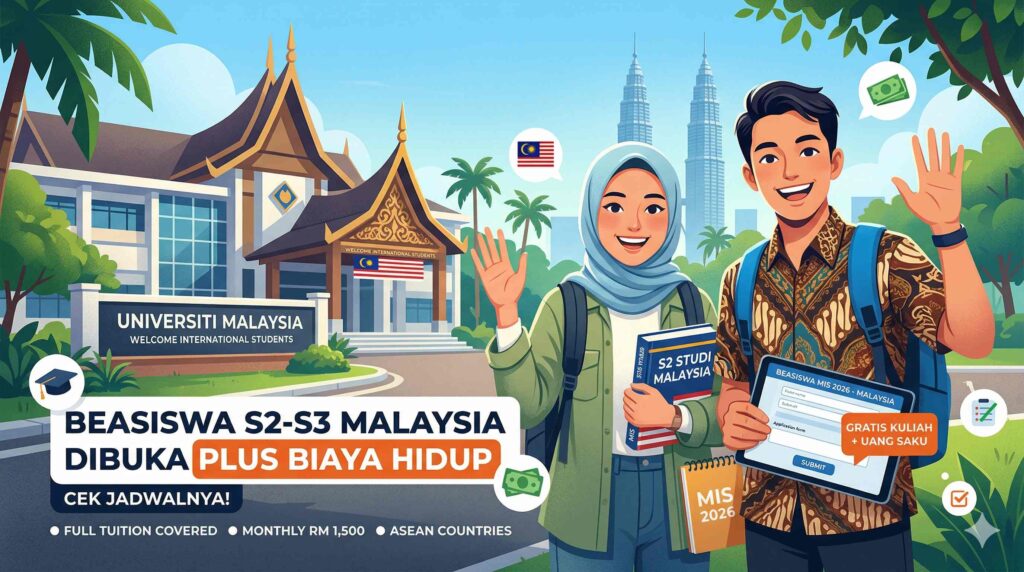 Info lengkap beasiswa MIS 2026 ke Malaysia untuk jenjang S2 dan S3, syarat IPK, skor IELTS/TOEFL, hingga daftar kampus favorit.